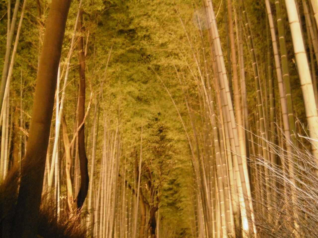 嵐山へ出掛けると必ず竹林の道を通ります。日中は、太陽の光を浴びて清々しい気持ちになります。昨年、初めて夜間のライトアップの時期に竹林の道を訪れましたが、日中とは違った幻想的な雰囲気に包まれていました。クリスマス前の訪問と言うこともあってか、カップルで訪れている人も多かったです。