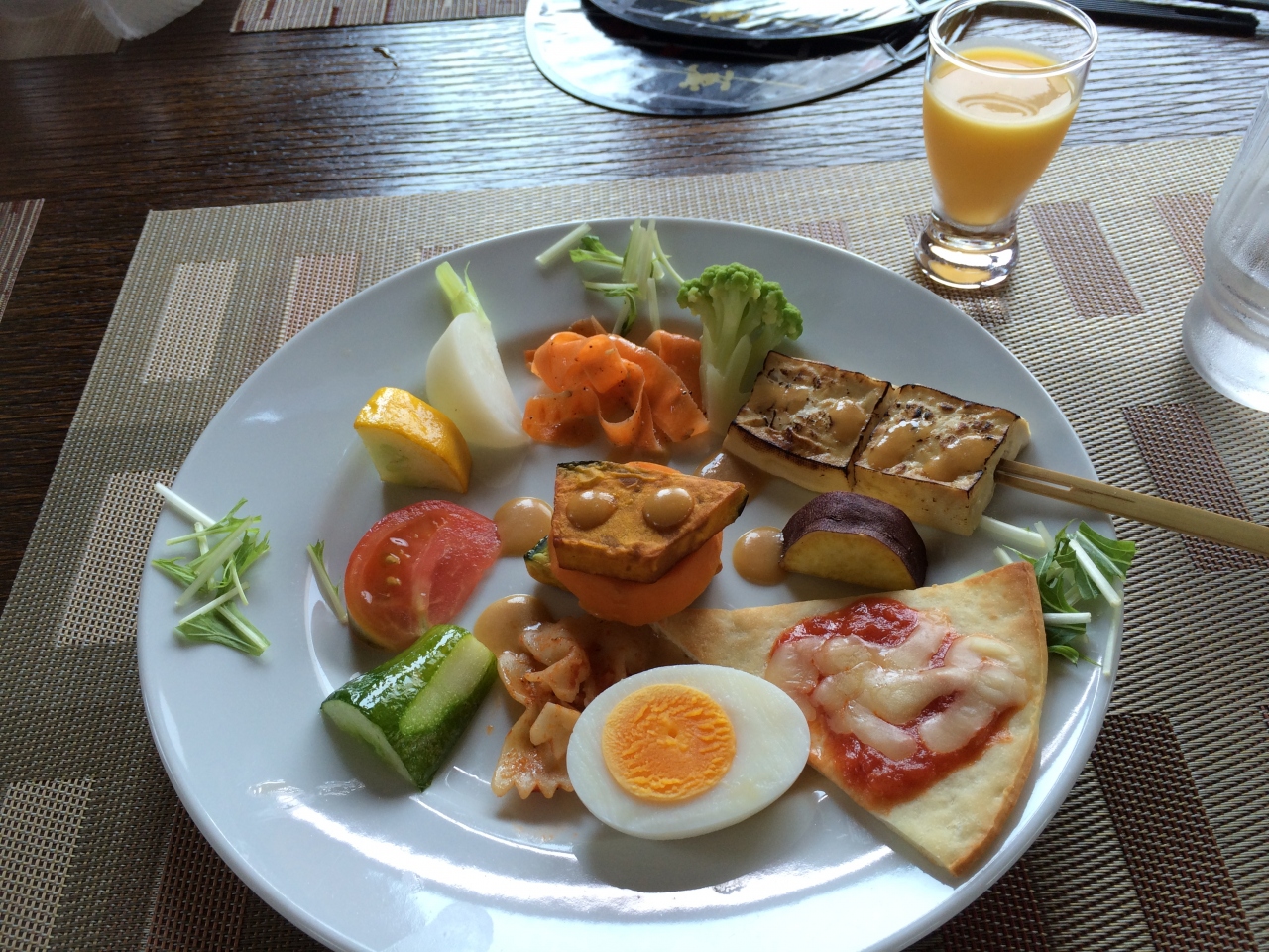 セットは、野菜ジュース・野菜のパレット(温野菜盛り合わせ)・メイン料理・デザート・ドリンク