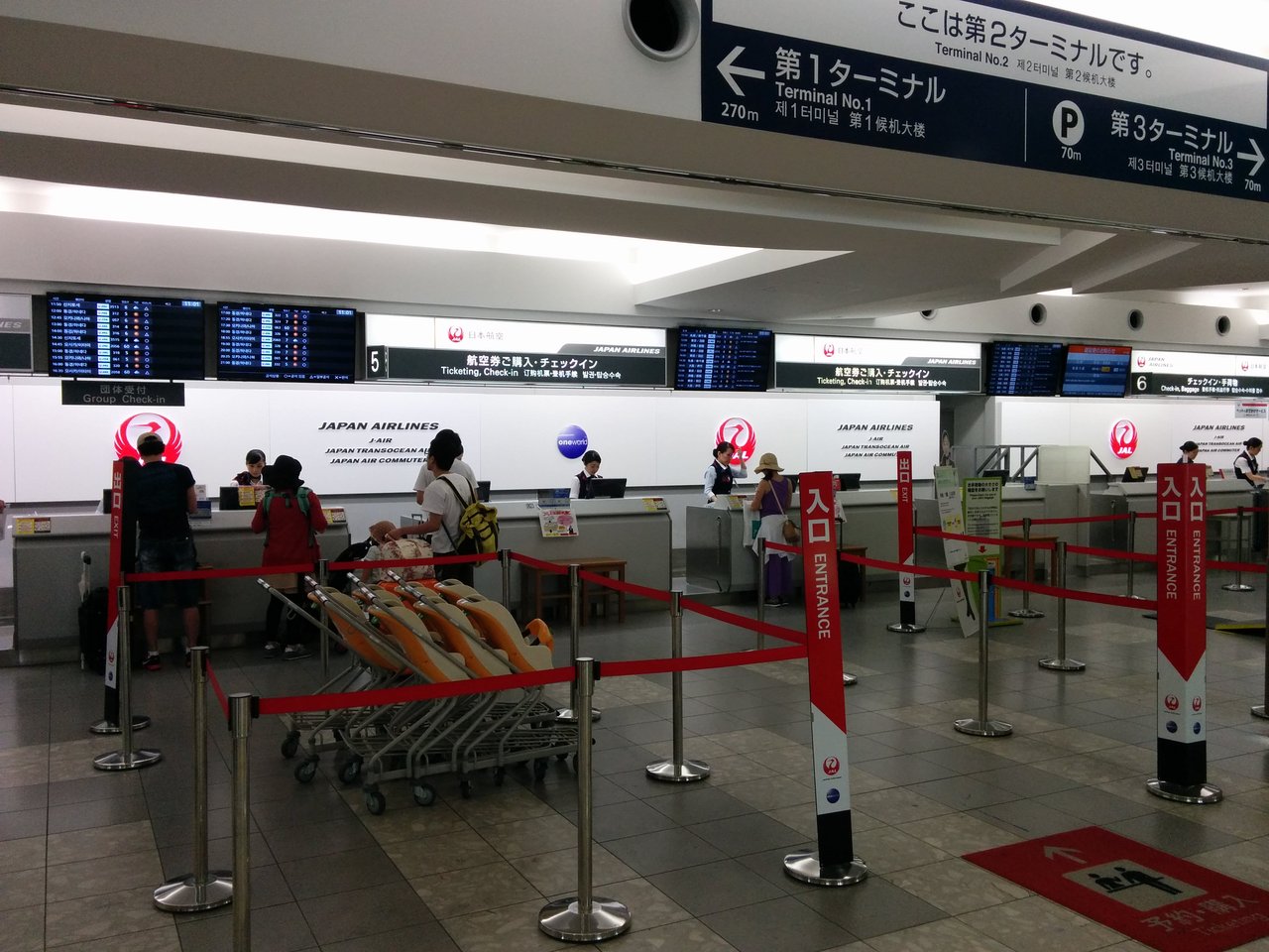 主に、第2ターミナルの1階にJAL、ANAなどのチケットカウンターがありました。