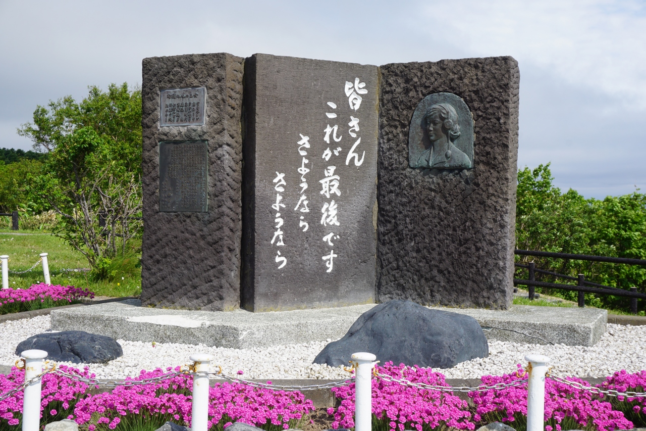 九人の乙女の碑は、稚内公園の氷雪の門の隣り。氷雪の門と同じく、太平洋戦争の終結時、ソ連が攻めてきた樺太で起きた悲劇の記憶をとどめるもの。ソ連軍が街に迫る中で電話交換手としての仕事を全うし、最後は毒を飲んで自決したというのです。ソ連軍の侵攻は8月20日で日本が敗北を受け入れた後のことですし、ちょっと割り切れない事件でもあります。