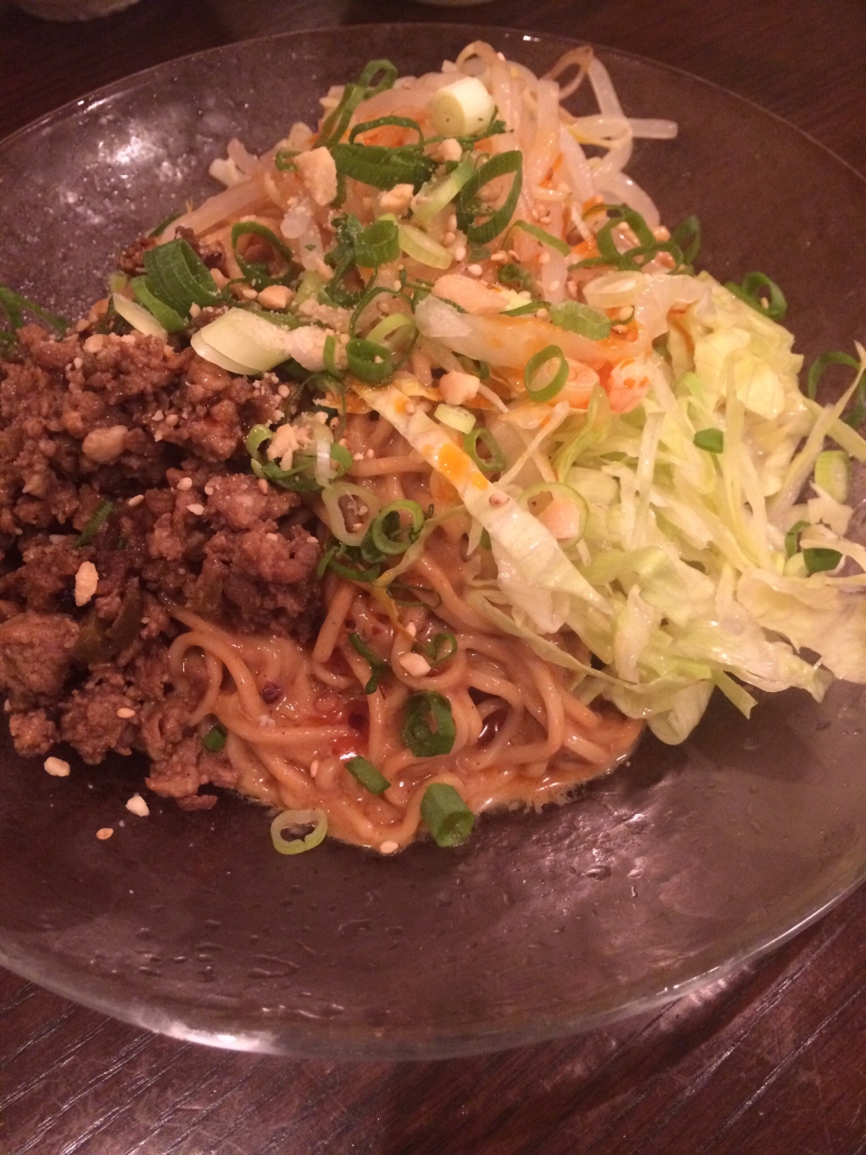 汁なし担々麺…おすすめと記されていたので、オーダーしましたが、〆にいただくには重いですね。ゴマだれが濃厚で、しつこく感じてしまいました。
