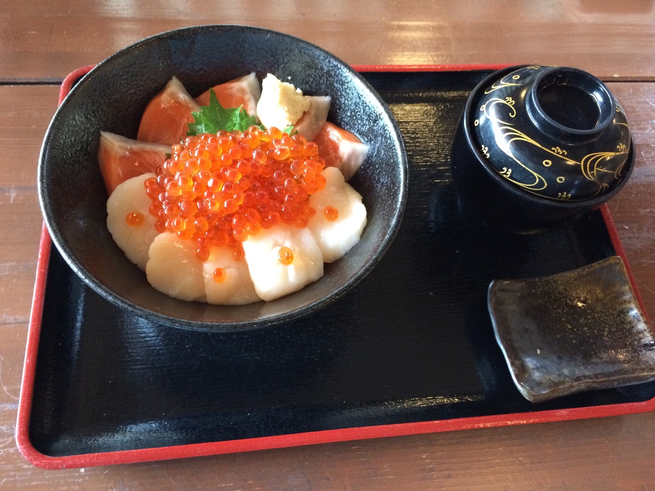 中に入ると、建物の端っこに「海鮮丼」の看板があり、迷わずインして、いただきました。ウニとイクラ、期待通りの美味しさに感激でした。