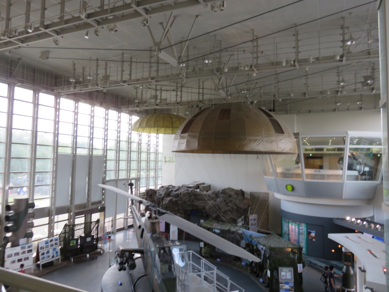 館内は思いのほか展示が充実していて、迫力のある実物の戦車やヘリコプター、パラシュートなど見れます