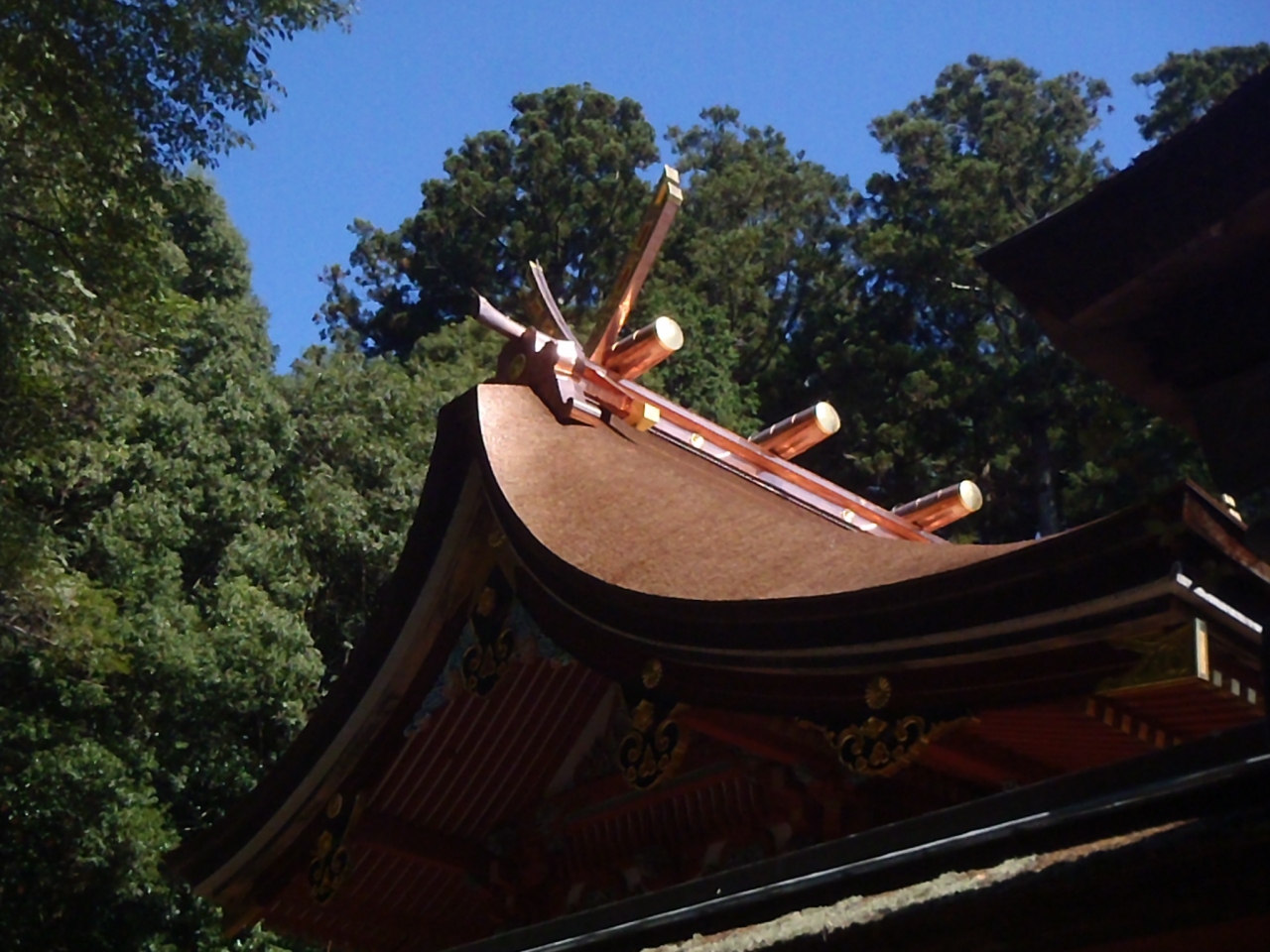 屋根もふき直し、柱や壁面も朱色に塗り替えられとても美しくなりました。
