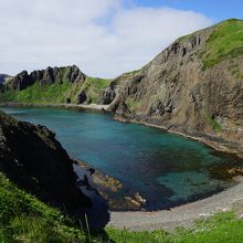 澄海岬は、礼文では一番の見どころ。湾の奥の港から歩きますが、まずその港の景色でもかなり美しくてうっとりとなっているのに、斜面を登って岬に登ってみるとさらに視界が開けて、陥没してできたような入江が現れます。その先にはスコトン岬まで見えて、豪快で鮮やかな青と緑の世界。スカッとした気分になりました。