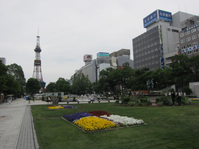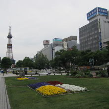 地下鉄の大通り駅を出て地上に出たところが大通公園です。地下はオーロラタウン地下街になっています。大通公園からさっぽろテレビ塔を背景に写真を撮るのがおすすめです。公園は、道路に沿っている長細い公園なので、散歩やスケボーなどを楽しんでいる地元の方もいました。
