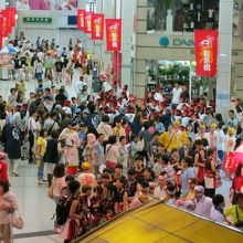 京町・新京橋商店街は、はりまや橋のすぐ側、江戸時代から続く京町商店街(40店舗)と、高知大丸西側の新京橋商店街(20店舗)の二つの商店街からなります。よさこい祭り前夜祭を見に行った際、こちらにも寄りました。前夜祭参加チームの踊り子さんたちが沢山いて、それはそれはにぎわっていました。
