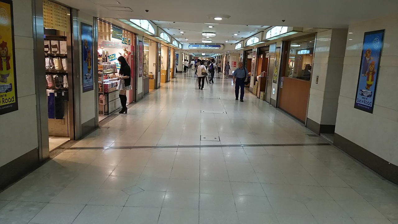 名古屋駅の地下に張り巡らされたショッピングストリート。左右にたくさんのお店が軒を連ねています。ぶらぶらして時間を過ごせますが、平日朝夕のラッシュアワーはJR、名鉄、地下鉄間の通勤客が大量に通り過ぎるので注意してください。