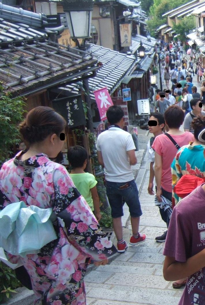 祇園の八坂神社から高台寺、二年坂を抜けて清水に向かう京都らしい土産物店、食事処が軒を連ねる活気のある坂道です。いつも大勢の人でごった返していますが京土産の店を見て歩くのは個人的には好きです。舞妓さんの姿をしている女性を時に見かけますが、本物か一時的な扮装物かいつも考えてしまいます。