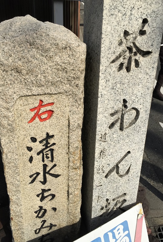 今回はたまたまほかのお寺などを見てからだったんで五条坂の交差点から清水寺に向かいました。上り下り両方の観光客でいっぱいの二年坂三年坂のコースよりも清水新道の方が人がそれほど多くはなくて歩くのには楽でした。五条坂は歩道が狭くて人間が渋滞していました。とりあえずゆったり歩きたいなら茶碗坂をお勧めしますよ。沿道のお店がいまいちですけどね。