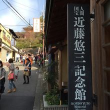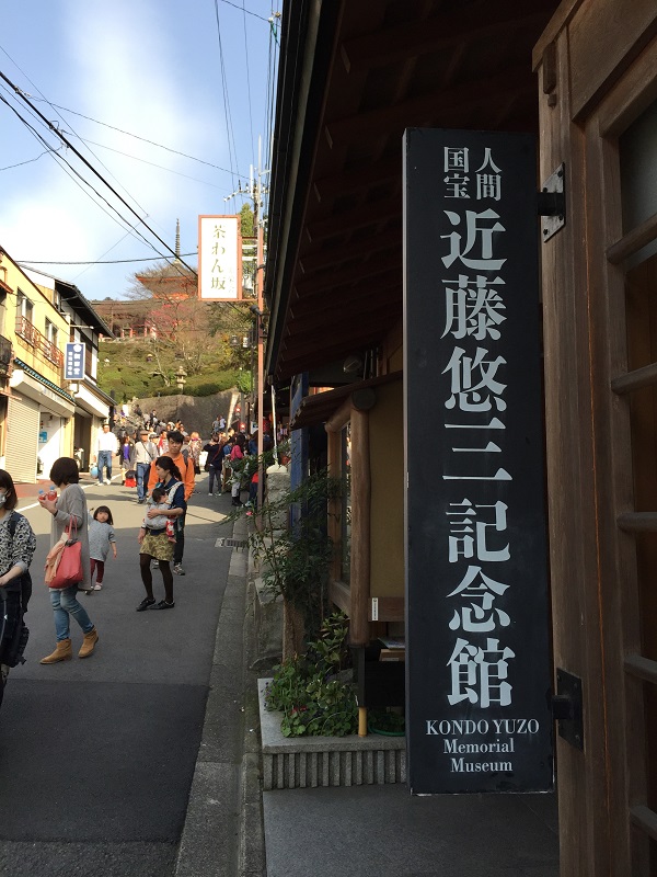 清水寺へ行くときに清水新道茶わん坂を上っていた時に見つけたんでちょっとのぞいて見たんですけども染付の技術で人間国宝となった近藤悠三氏の作品を展示する美術館でした。味わいのあるお皿でちょっと人間国宝を身近に感じましたよ。