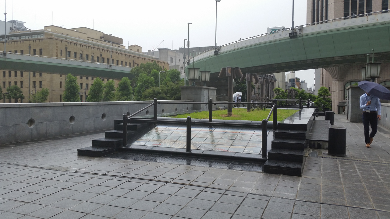 橋の上には、タイルに書かれた錦絵が飾られています。