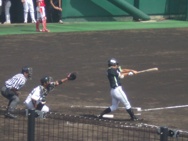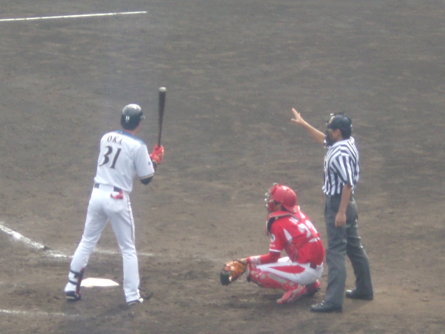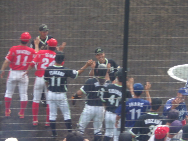 この交流戦は場所を変えながら時々開催されているようですが、こうしたチャンスはなかなかありませんので、最近のチャラチャラした、商売ありきのプロ野球にうんざりしてしまった方などには非常にお勧めです。ただ、一応、プロも参加している試合ですので、ファイターズの鎌ヶ谷のマスコット、カビーが来てたり、鎌ヶ谷グッズが販売されていたりしたのはご愛嬌、といった感じでしたが…。