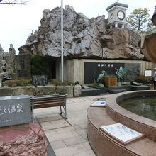 湧浦の湯壺には鶴が2羽。鶴も温泉に入のかしら?