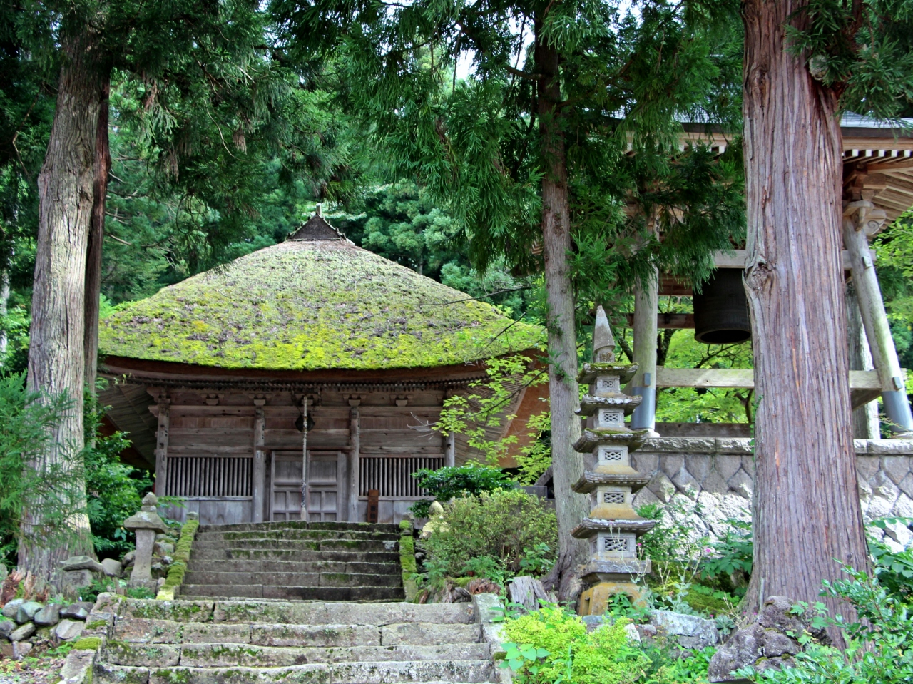 茅葺の屋根が美しい薬師堂、そして、静かな森の中で佇む将軍杉に出会う事が出来る。