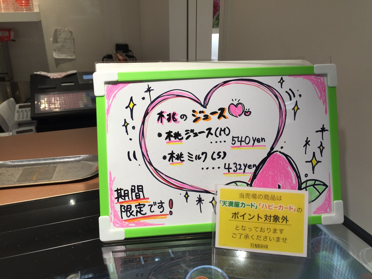 地元デパート天満屋の地下にある こちらならジュースやパフェが食べられるとのことで立ち寄る。