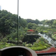 広い日本庭園を眺めながら食事ができる特等席です。