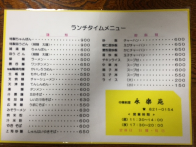 地元の人たちで賑わう中華料理店ですが、麺類のメニューが豊富で、選ぶのに迷ってしまいます。
