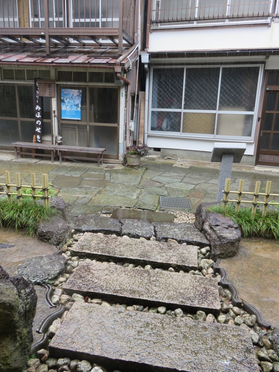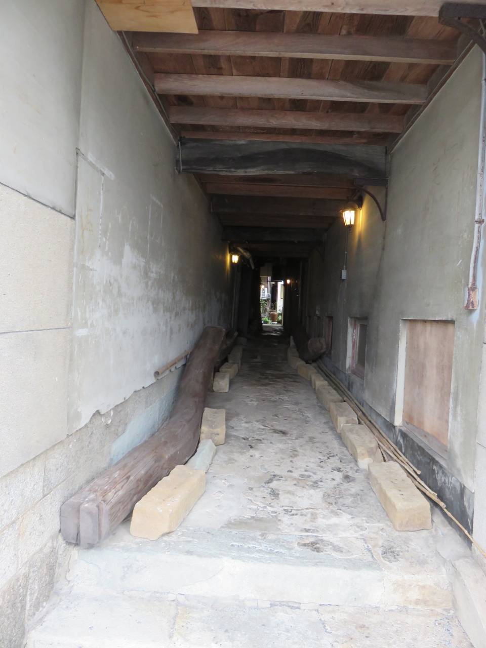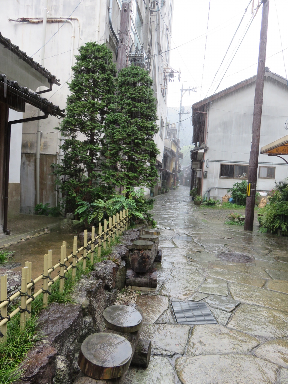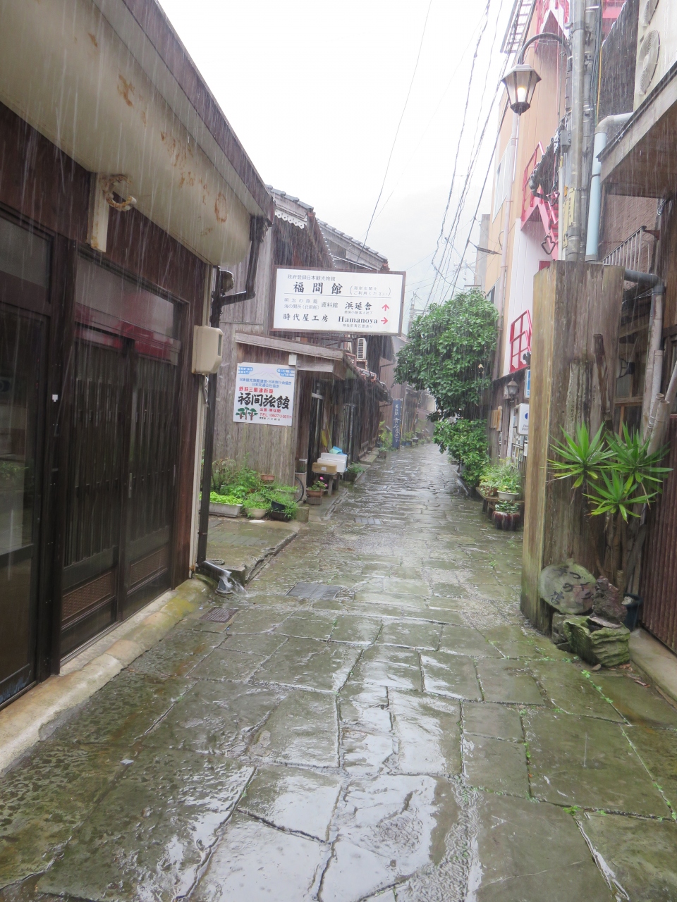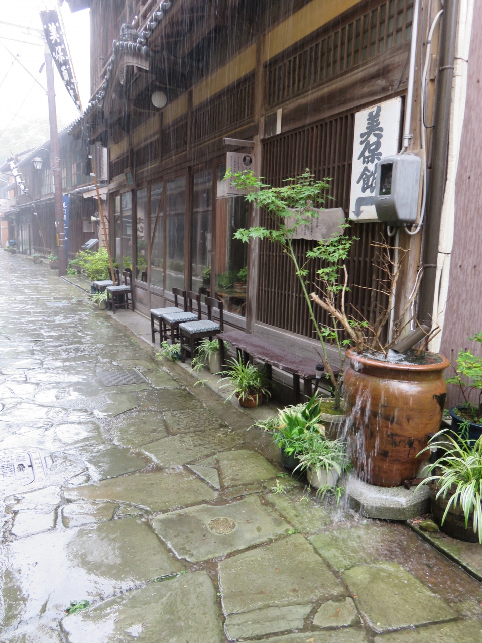 古い街並みに美しく映える青石は、海岸から取ってきたもので、雨で濡れると青く光って情緒あふれる風景