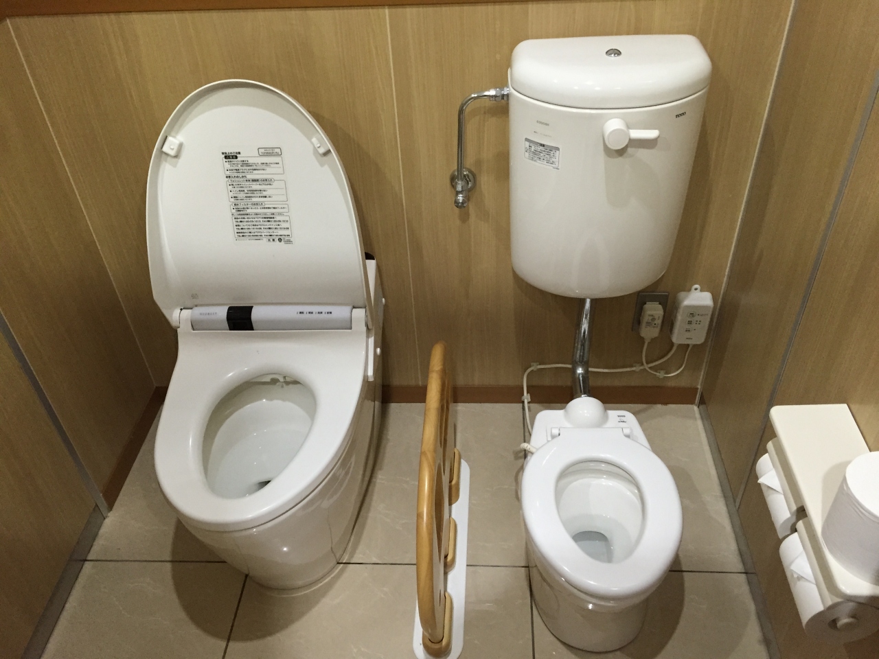 妻とのLCCでの高松うどん旅行の際に海を見ながら一休みと思いここにやってきました。一番の目的はトイレだったのですが、入ってびっくり。思わず写真を撮ってしまいました。大人用と子供用が一つづつ鍵のかかる部屋の中に併設されているのです。はじめてみました。これも観光ですね!