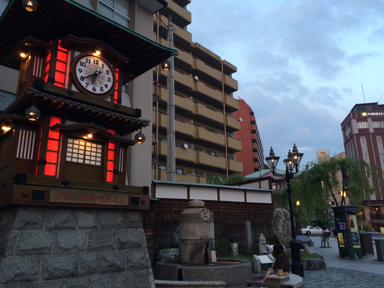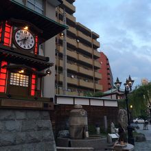 道後温泉駅の目の前にあり、直ぐ横には無料の放生園足湯があるので、足湯に入りながら1時間に1回時計が鳴るのを聞きました。繁華街なので観光客が多くたくさんの人が写真を撮っていました。夕方になるとライトアップするのでより綺麗でした。