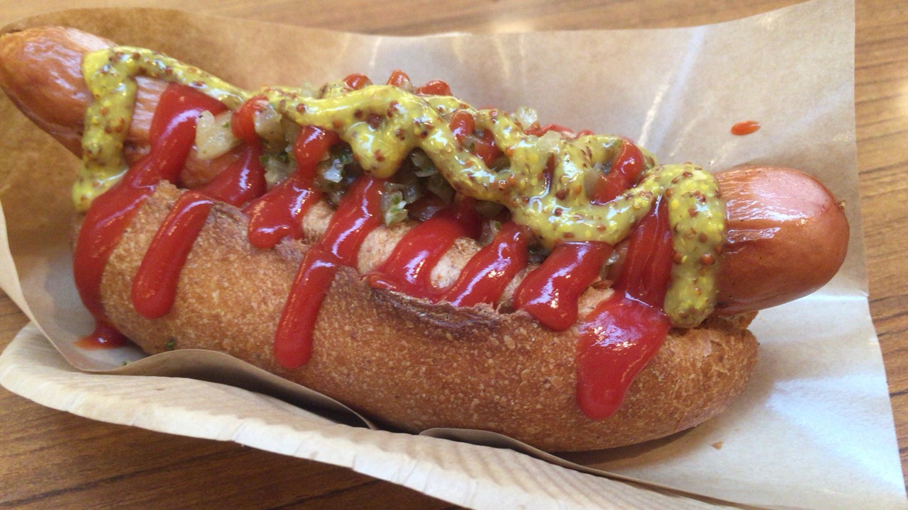 フランスパン並みの分厚いパンに、あのモクモクの巨大ウインナーがぎっしり詰まっていて、すごくボリューミーで美味しかったです。
