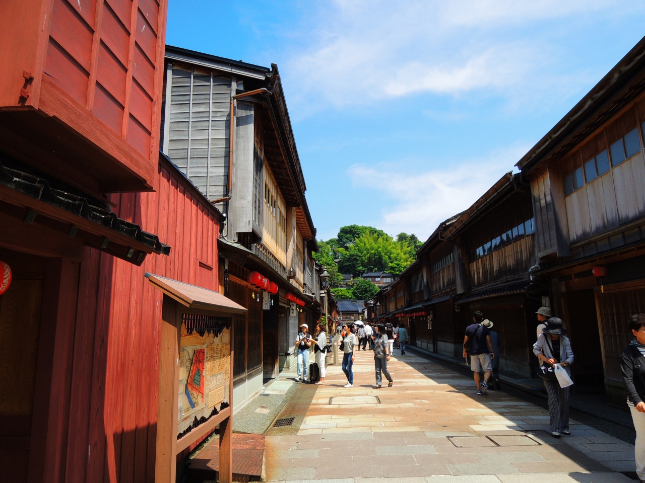 自分としては茶屋街は静かで雰囲気がいい主計町茶屋街のが好きですがここは人が多いですがショップなどが多いので時間を楽しめるところですね。