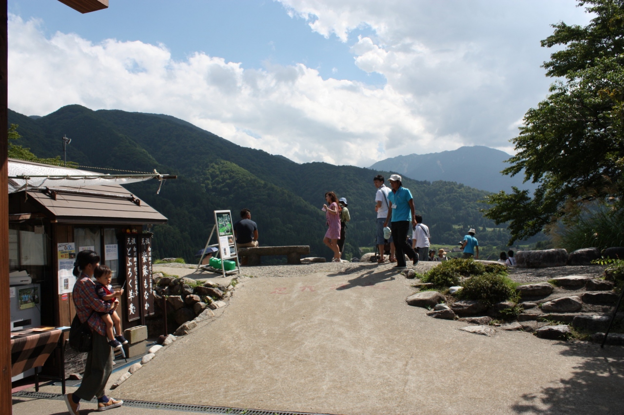 白川郷の合掌造りを一軒一軒見るのも良いですが、山の上から一望するのは更にいいと思います。MIGHTY ATOMは徒歩で登りました。下から15分位で駐車場に到着したので、そこからも景色で満足して下りてしまいました。下から見ると展望台らしき部分の奥に建物があります。どうやら手前の曲がり角で戻ってきてしまったようです。流石に2回目の徒歩はきついので車で上ってしまいました。撮影ポイントでは 無料撮影隊がおり、小さな写真は無料で、大きな写真は1,500円のようです。気の弱い妻は買ったようです。撮影ポイントは狭いので撮影後は早目に譲りましょう。