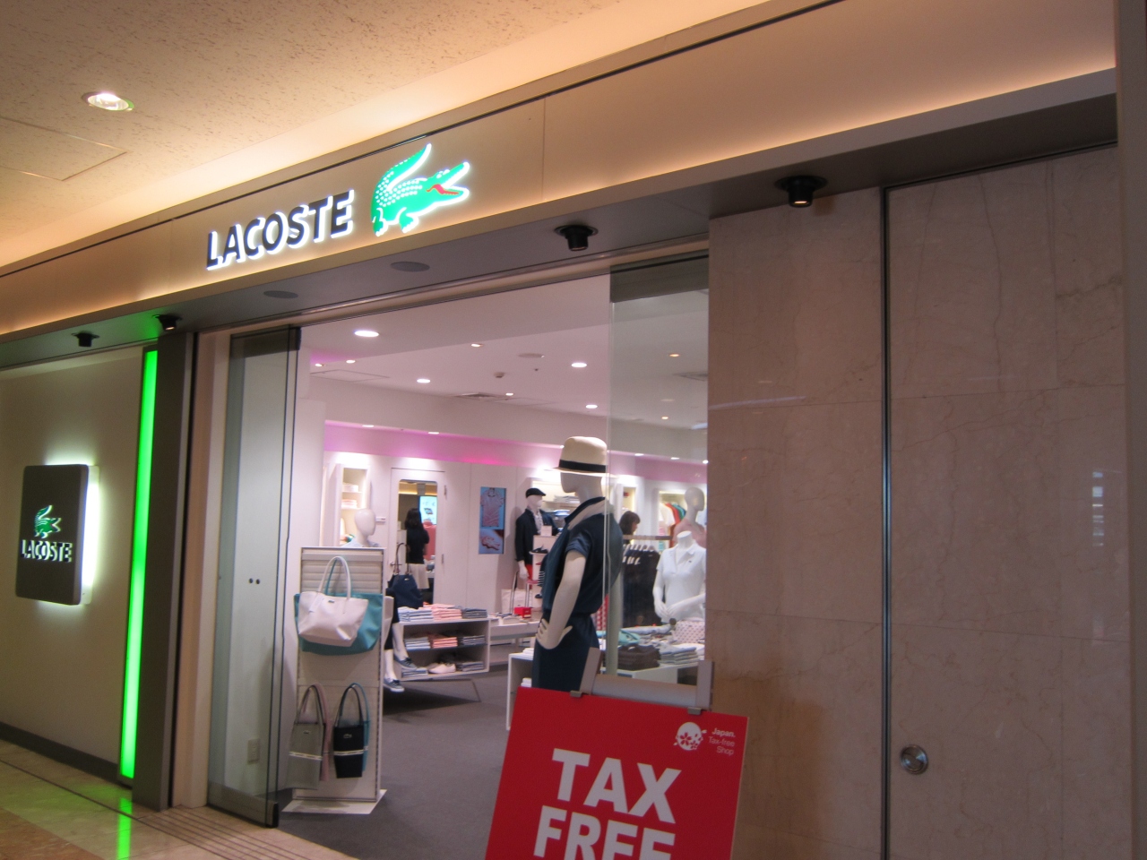羽田空港第1ターミナルマーケットプレイス3階にお店があります。ラコステマークが素敵なので、好きなメーカーです。ポロシャツやバッグなどカジュアルが多く、ディスプレイされたセットそのまま着て」旅行に行きたい気分になりました。