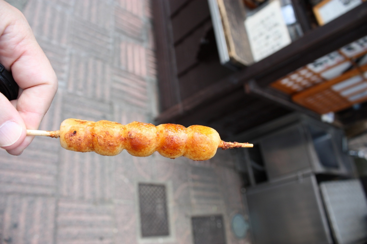 夕食まで時間が有るのと、街並みを見ながらの散策を兼ねて鍛冶橋にやってきました。お目当ては 此処のみたらし団子です。今回は ホテルからの無料券を頂きました。一般的な「醤油だんご」を 飛騨地方では「みだらしだんご」と言うそうですが、此方は暖簾も「みたらしだんご」になっていました。香ばしい匂いが漂っているので、購入する方が多いです。美味しく頂きました。