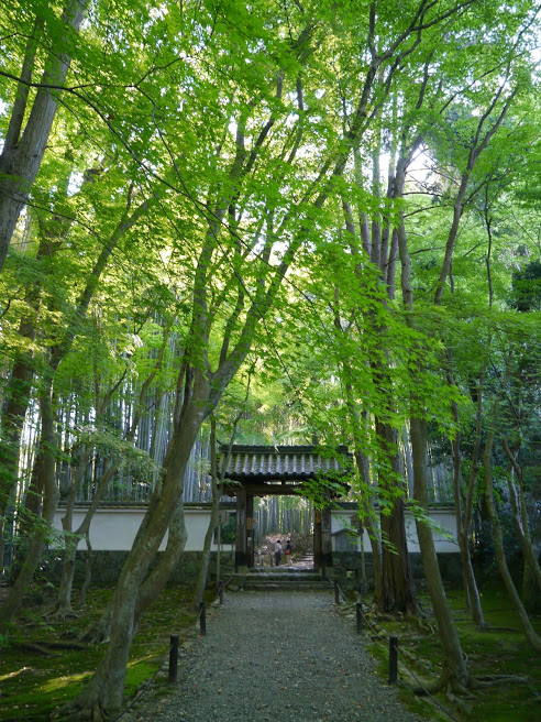 西芳寺、鈴虫寺、松尾大社から近くにある竹林が有名なお寺。竹の寺として有名だが、新緑の時期の青もみじが美しく、もみじのトンネルの先にある門が絵になる。庭は苔が美しいようだが、あいにく雨が少なく茶色かった。雨が降った後に再訪したい。