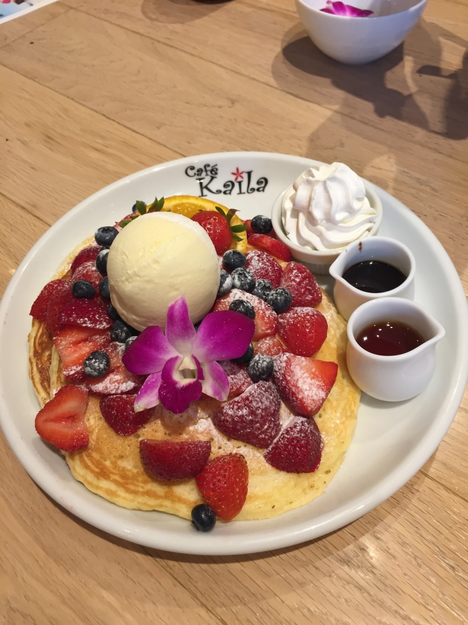 パンケーキは、かなり大きく2~3人でシェアしても充分。パンケーキ自体は美味しかったんですが、トッピングのブルーベリーが酸っぱすぎて…あまり食べれませんでした。