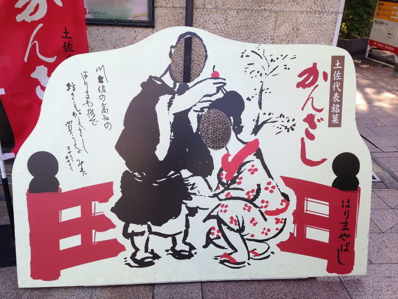 お店の前に、顔の部分に穴のあいた、はりまや橋を描いた写真撮影コーナーがあり、それが目に付いてお店にも入ってみました。