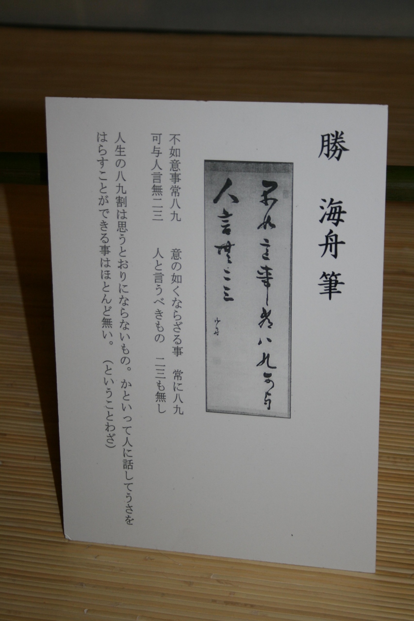 地下鉄の鞍馬口から歩いて5分ほどでした。有名な書家の方のもの、古い刀剣、年代物の教科書、他、勝海舟の書もあり、それらが間近で見られました。