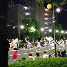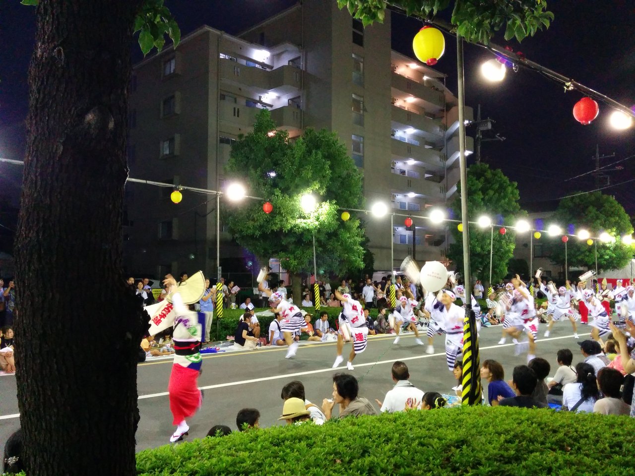 阿波踊りのお祭りです。4つの通りを、たくさんの連が阿波踊りを踊りながら練り歩きます。着物ってかっこいい。初心者の当日参加も可能で、とても楽しかったです。出店もたくさん出ていました。おすすめの、お祭りです。