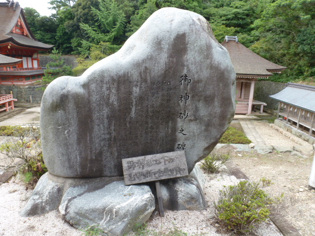 出雲大社から車で20分ぐらい走ったでしょうか、海岸線を登っていくと見えてきます。門には珍しく木で彫った狛犬があり、大きな松の木が出迎えてくれます。ここで砂のお守りを購入しました。1個500円で、白、赤、紫の三色が選べます。砂のお守りは、体の悪いところをその砂でさすると良くなるそうな・・・