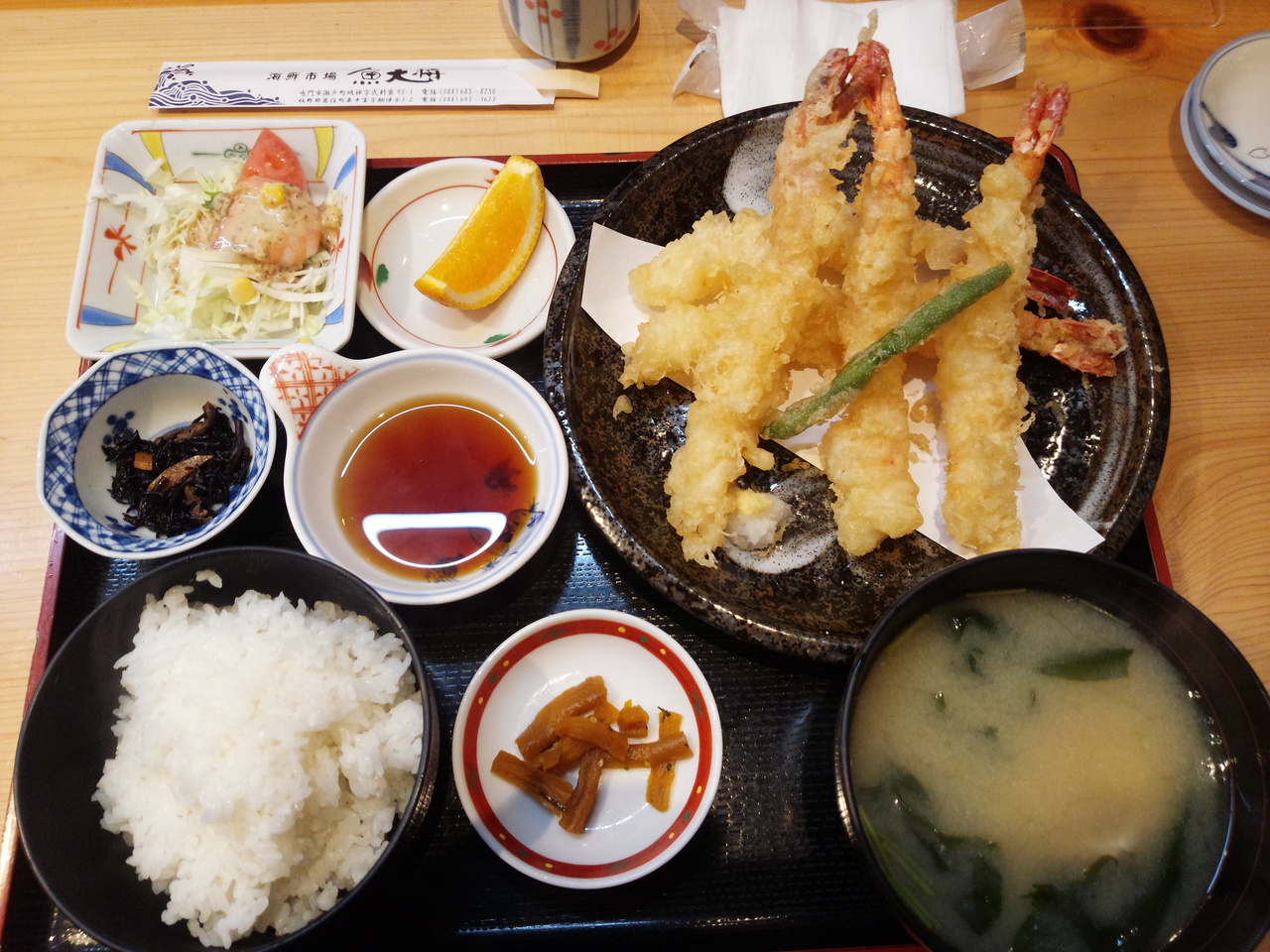 注文したのは大海老天の定食で1500円。海老天は本当に大きく、5匹ありましたが3匹ぐらいでもう満腹に。カニ入りの味噌汁も量が多く、女性にはこの定食を完食するのは大変だと思います。でも美味しかったです。