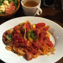 トマトソースの本日のパスタを食べましたが、酸味のきいたフルーティーなトマトソースで、とてもさっぱりとしていておいしかったです。