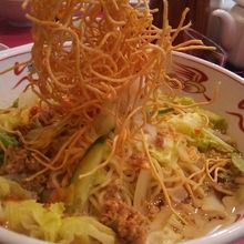 麺の上に堅焼きの麺が乗ってて面白いです。