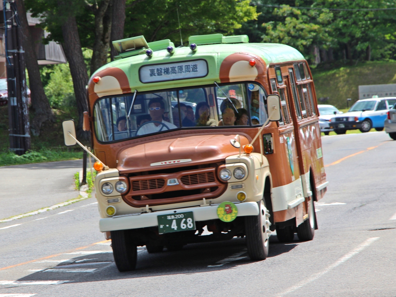 路線バスは駐車場のある区間を通るので、どちらかの駐車場前のバス停から反対の駐車場前のバス停(裏磐梯高原駅 または 五色沼入口)へと移動し、そこからバスに乗り車を停めた駐車場へと向かって散策路を歩けば、往復2時間を歩くよりは時間を節約できる。この2区間のバス代は250円/大人で乗車時間は10分弱だ。
