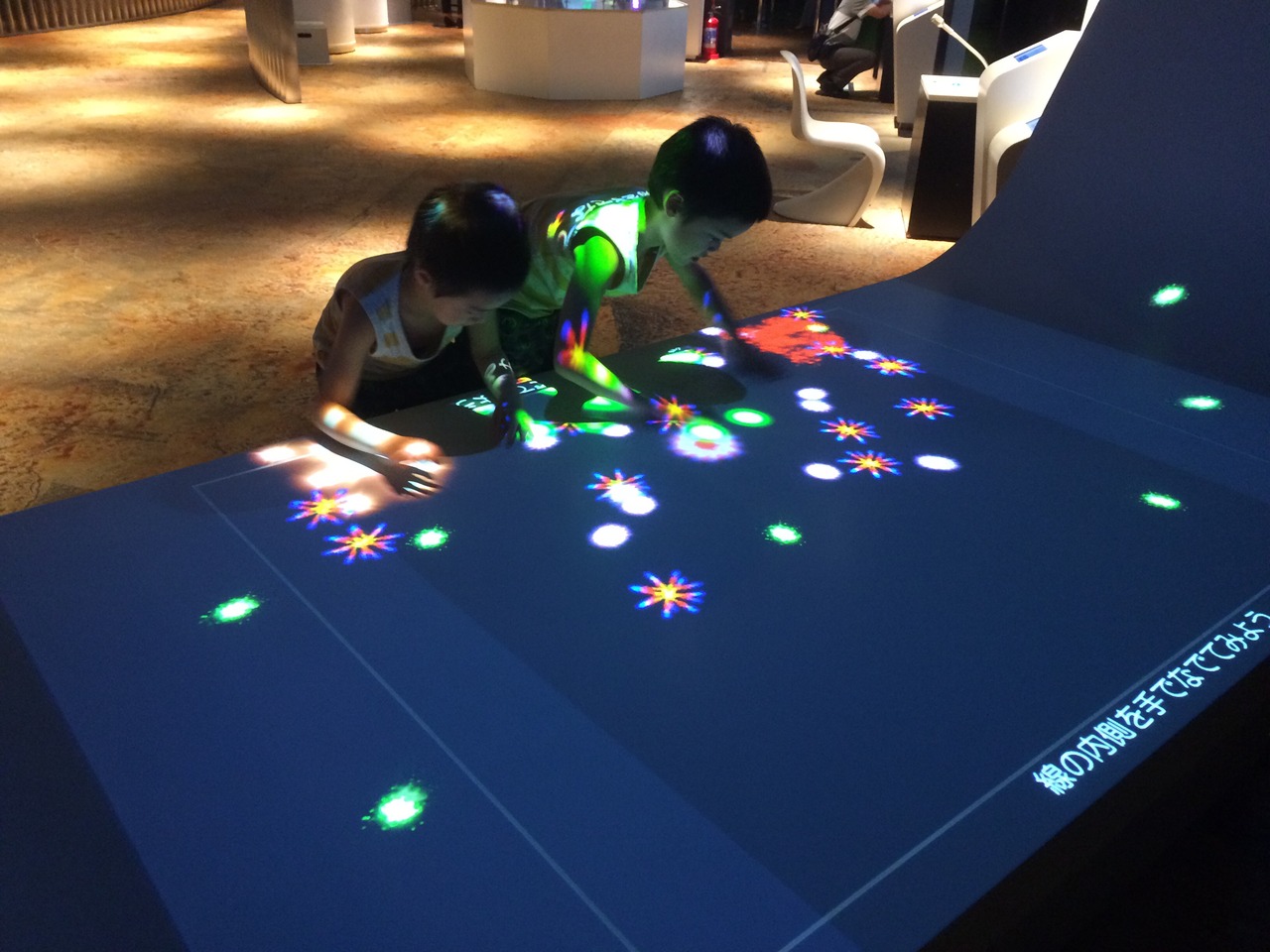 メディアージュの5階にあるソニーによるエンターテイメント施設。自分の顔がいろいろ変身するコーナーや立体映像や自分の声が高くなったり低くなったりする機械などがあり、子供達は大喜びでした。大人500円、子供300円という入場料は、なんでもバカ高いお台場にあってコスパいいと思います。