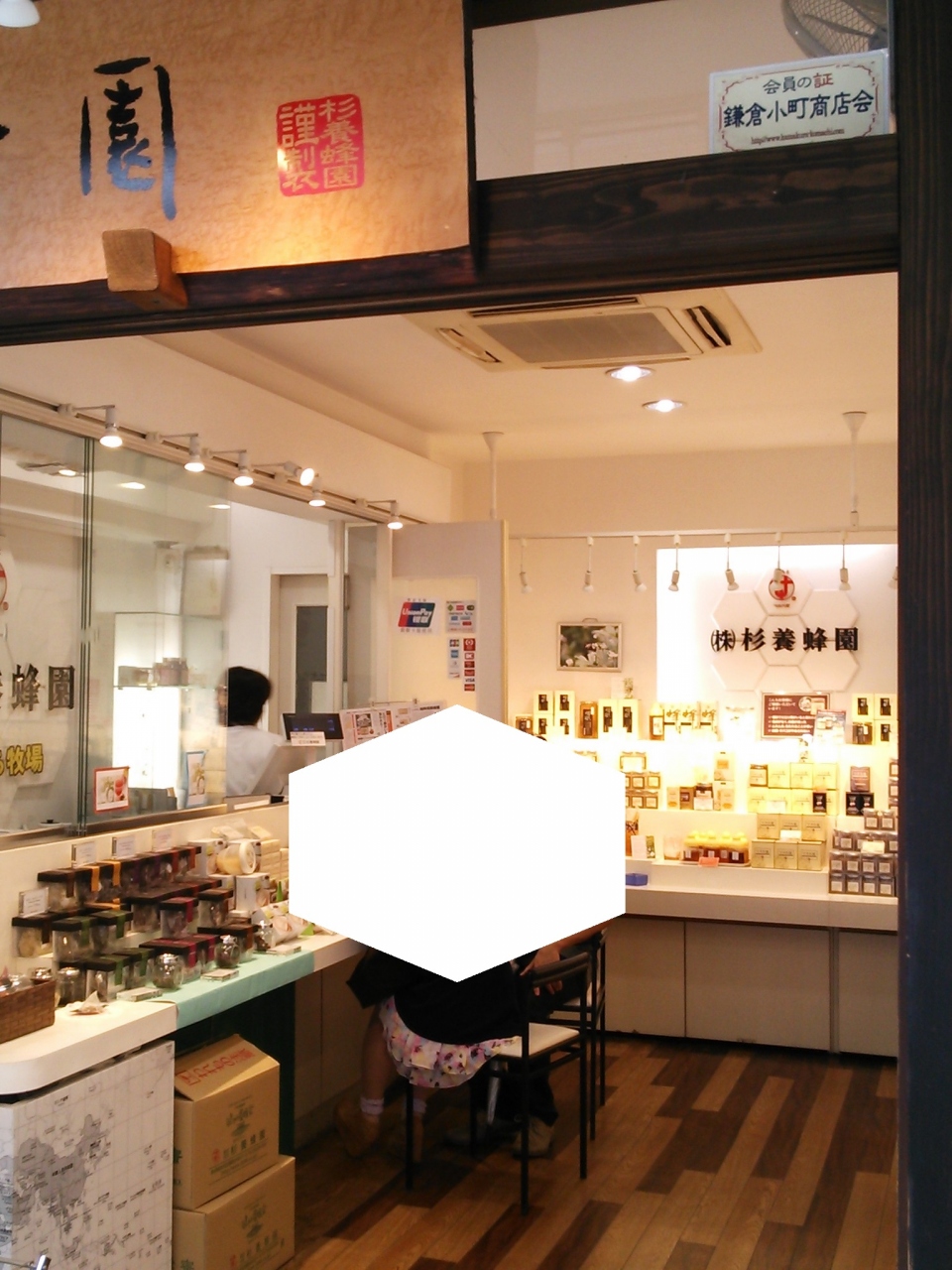 明るい店内で入口付近でははちみつを使ったドリンクの試飲をやっています。
