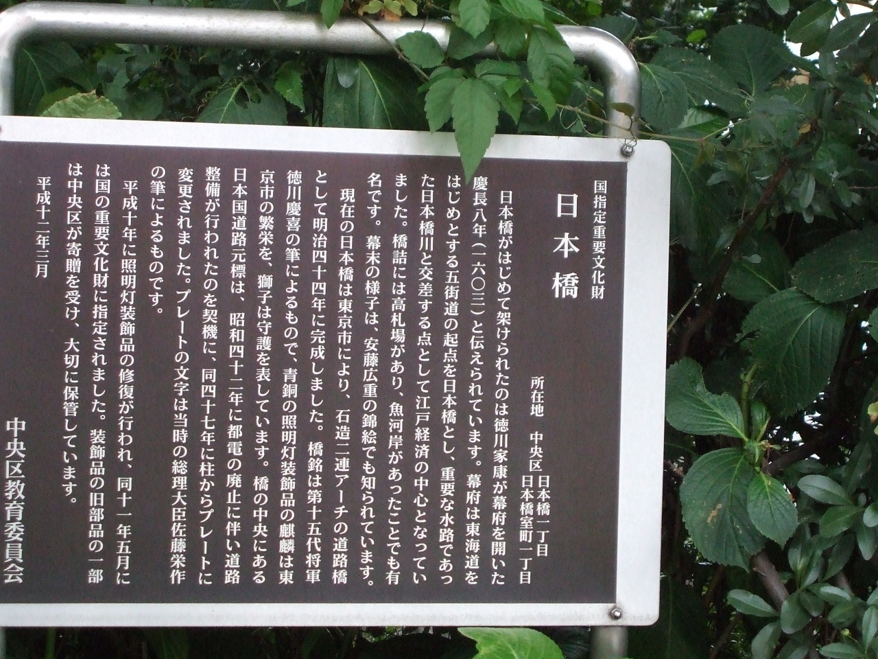 日本橋の橋付近には記念碑があり、見逃すところだった