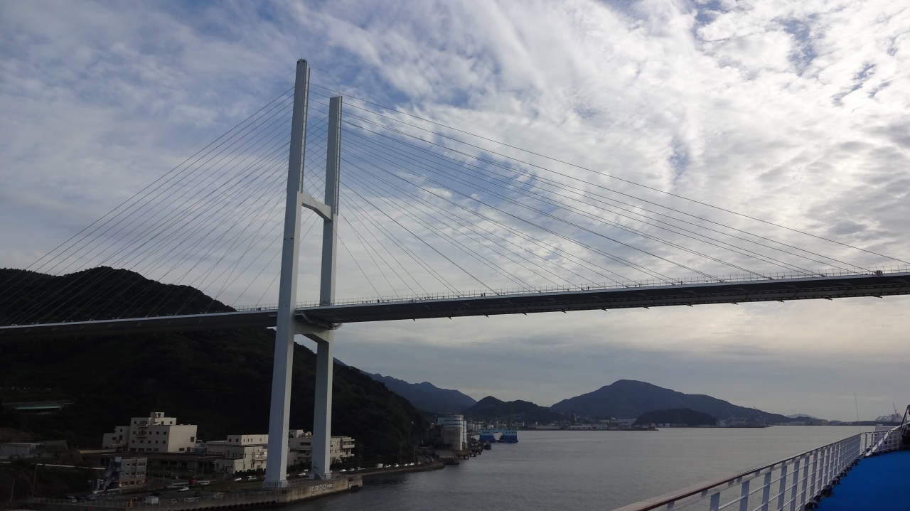 飛鳥?に乗船し、長崎港松が枝国際ターミナルから、釜山に向けて出航した際にくぐった橋です。