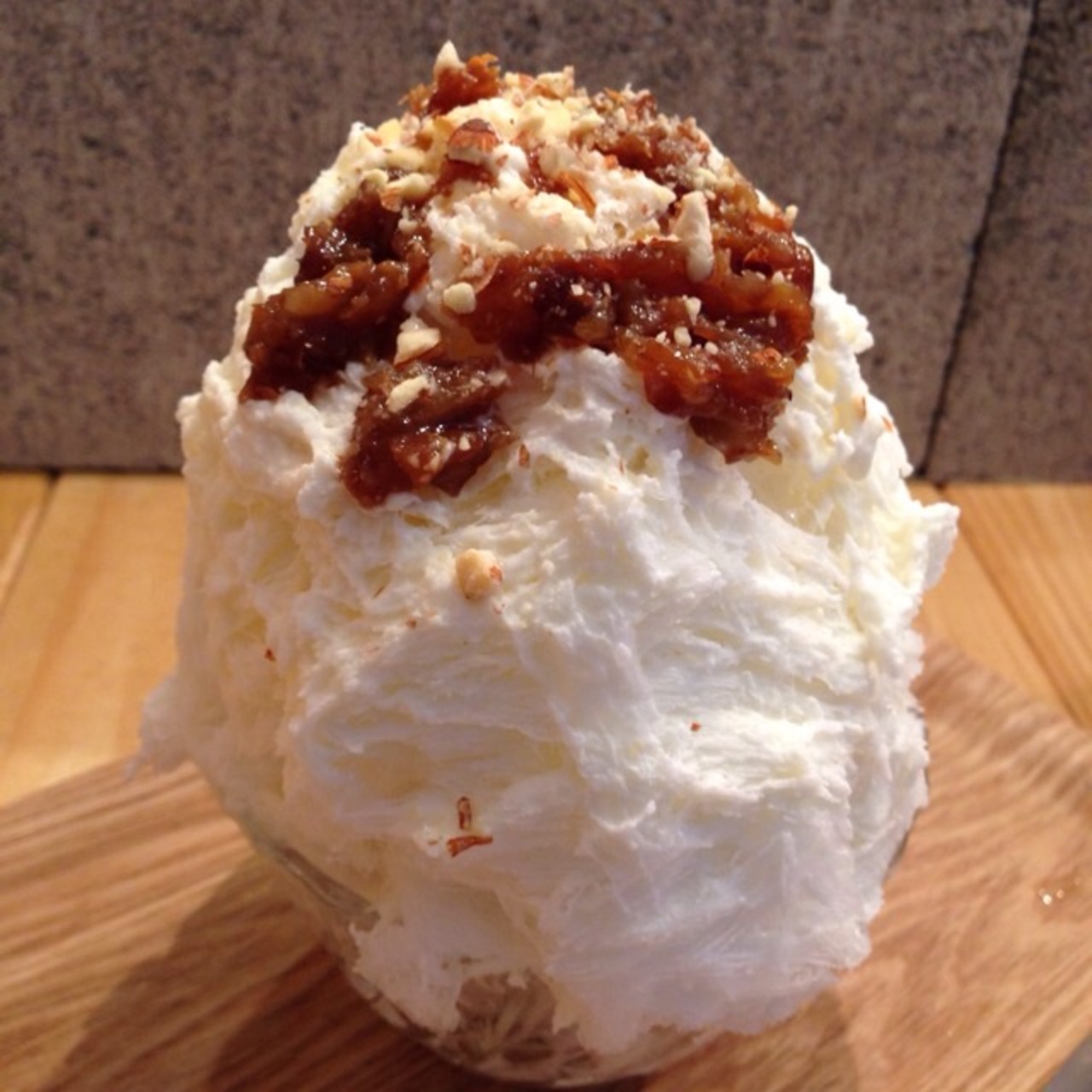 通年かき氷を提供する専門店。現状暑いからか店はオープンテラス状態で外から丸見えです。L字カウンターの7席。料金前払いです。単品メニューは7種あり7~900円。季節柄あっさりしたフルーツ系が多かったです。TwinDishという店の名前にもなっているミニサイズ2種セットが1200円。単品だとけっこう大きいし、色々な味を試したいので2種セットにしました。氷はふんわり盛られてシロップは甘すぎず美味しくいただけました。週末の昼でしたが待つことなくかき氷が食べられる専門店です。