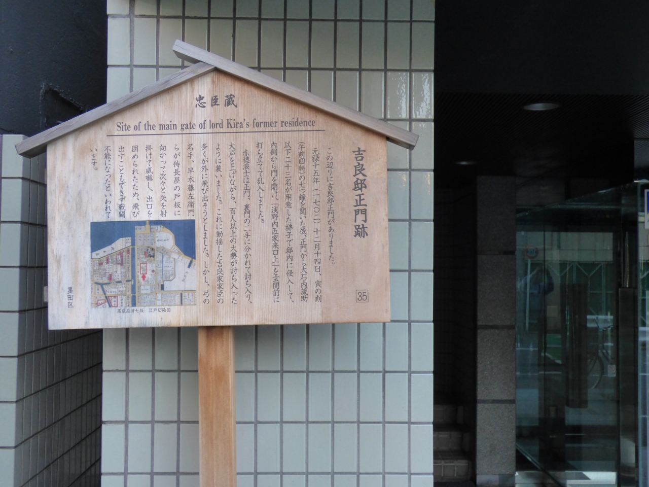 大石内蔵助ら表門隊23名は、表門が頑丈だったため、梯子を門の屋根にかけて登り、それから屋敷内に縄梯子を使って降りて門を開けたといわれている。大名火消しを務めた赤穂藩にはたやすいことだっただろうが、このとき原惣右衛門が屋根から飛び降りて足を挫いたといわれている。