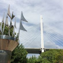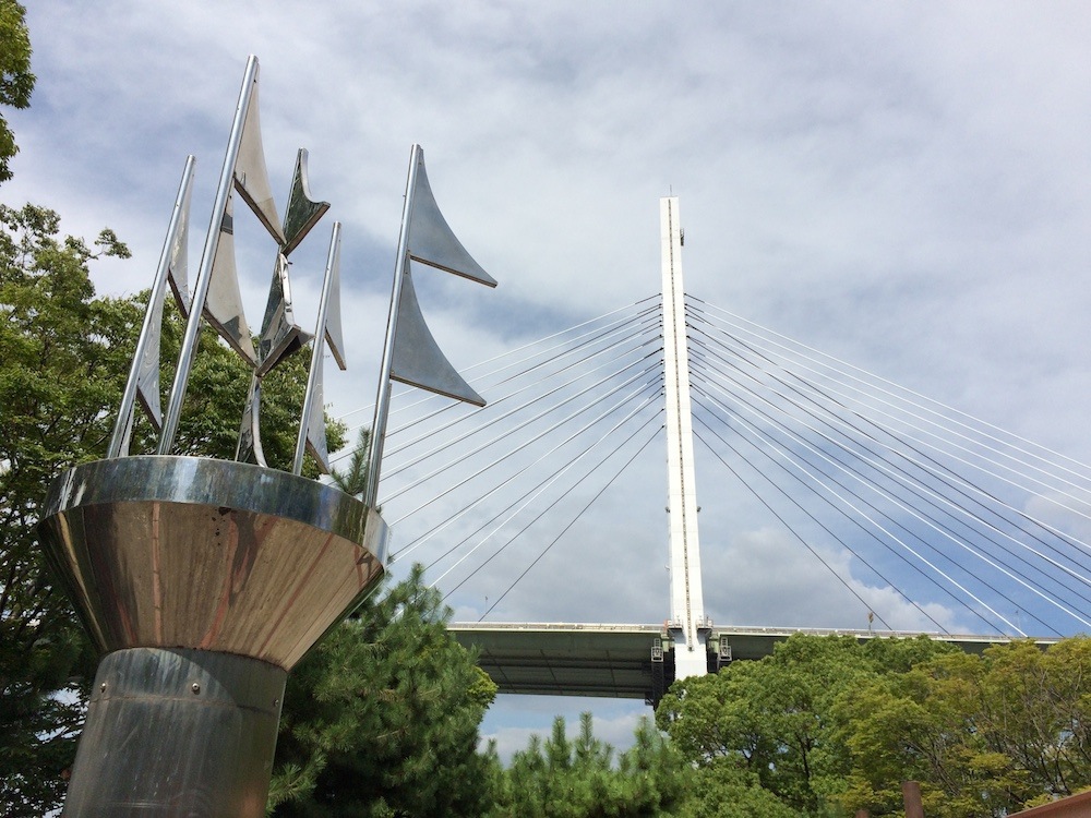 白くて立派な吊り橋です。橋自体は渡るには阪神高速5号湾岸線の一部のため、自動車専用道路になっているので、歩行者や自転車などでは渡れませんが、眺めるためには天保山公園に。ここにある展望台からはきれいに橋がよく見えます。