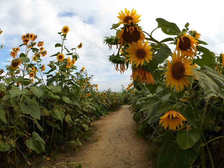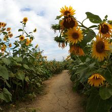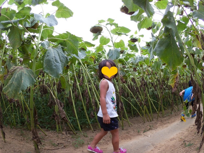 間に合うかなという終わりの時期(お盆)に行きました。酷暑も手伝い残念ながらひまわり満開というわけにはいきませんでしたが、見通しがきかない迷路に子どもたちは大興奮。迷路は大人でもけっこう迷い楽しめました。行き止まりのところにクイズがあってイラっときたり。背の高い人は花粉がベッタリつくこともあるので白い衣類はご注意。展望台付近は顔ひまわりがたくさんありました。アンパンマン顔もあり。
