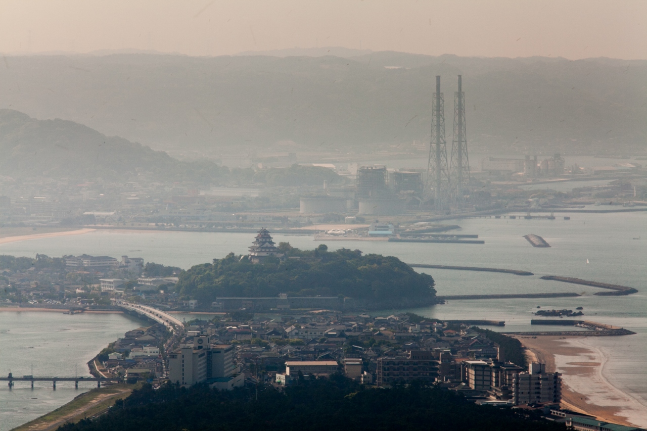 国道202からちょっとハードなヒルクライムで駐車場へ。そこからは徒歩でもう少し登るが、全体が公園になっていて池や周囲の植込みがきれい。頂上からの見晴らしは抜群。松浦川も唐津城も虹の松原も手に取るようだ。駐車場のほか、頂上にも売店があって便利。