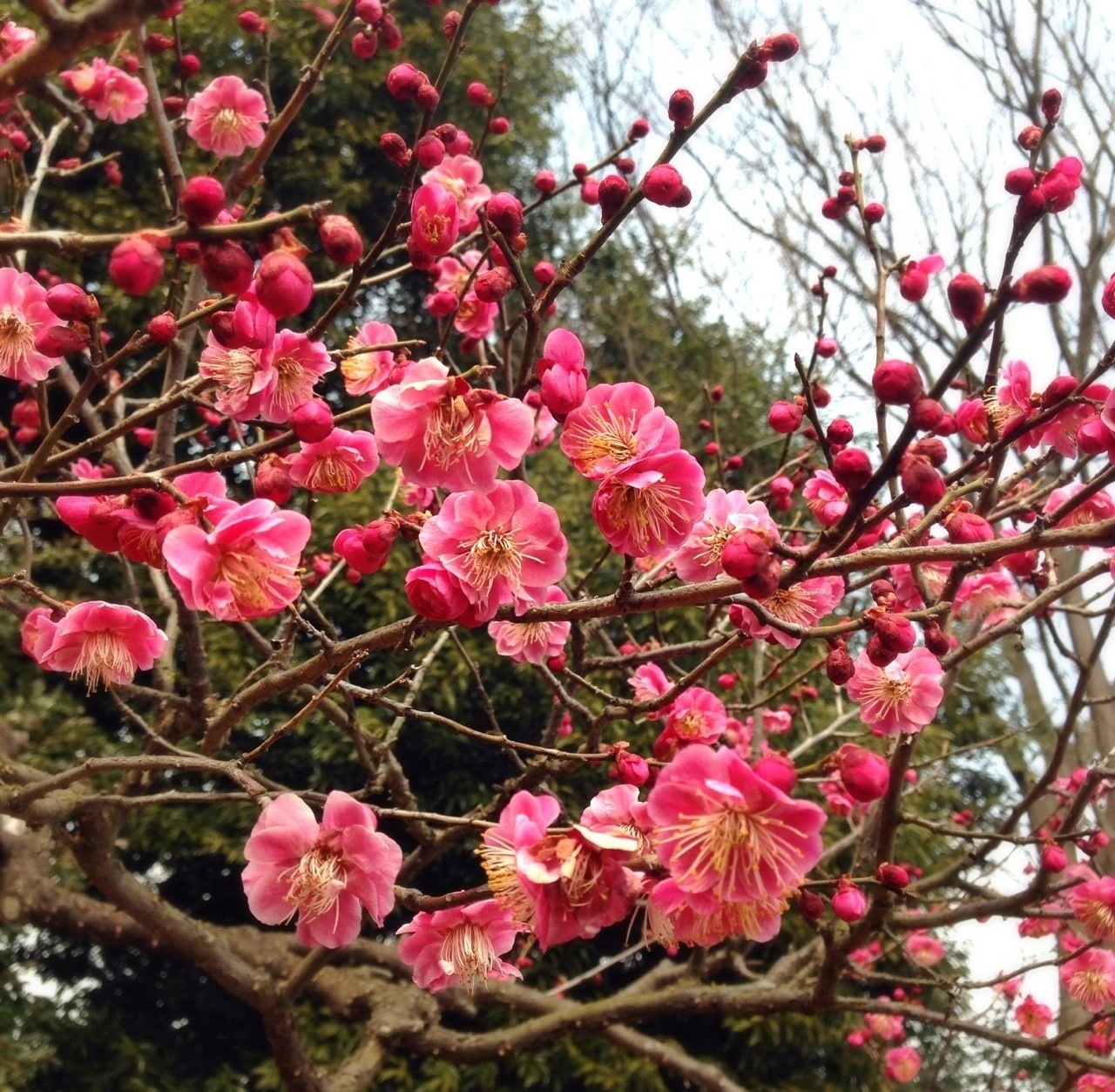 濃いピンク、桃色、白、色とりどりの愛くるしい梅の花が咲き乱れておりました。梅の花弁はまん丸で、なんとも可愛らしいですね。